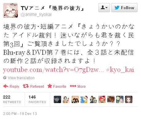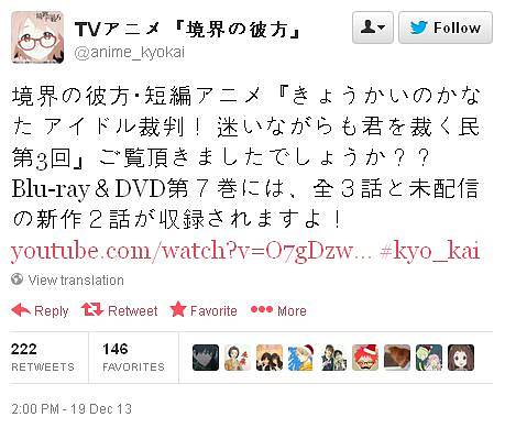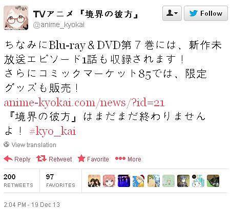'경계의 저편' 애니메이션 트위터에 올라온 정보에 따르면, '경계의 저편' 블루레이 & DVD
