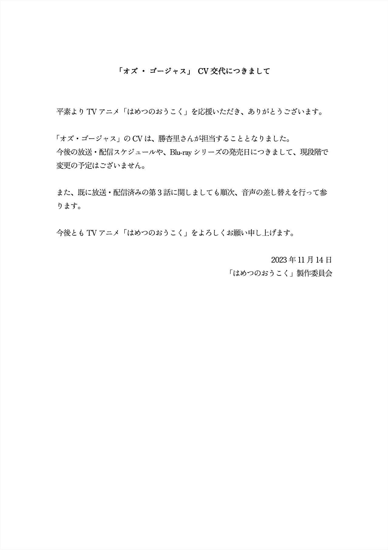 가담한 혐의로 체포되었으며, 이에 따라 오즈 역 성우의 교체가