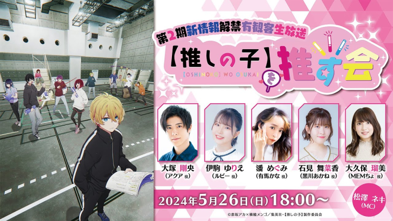 TV 애니메이션 '최애의 아이' 제 2기 관련 새로운 정보 발표하는 프로그램 2024년 5월 26일 오후 6시 유튜브 공식 채널에서 온라인 생방송 예정