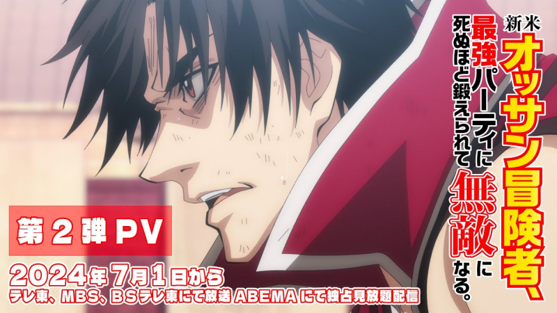 TV 애니메이션 '신참 아재 모험가, 최강 파티에서 죽을 정도로 단련해서 무적이 된다.' 2024년 7월 1일 방송 개시 결정