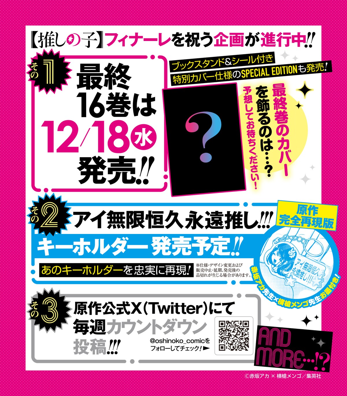 만화 '최애의 아이' 2024년 11월 14일 발매되는 '주간 영점프' 제 50호에서 완결 예정