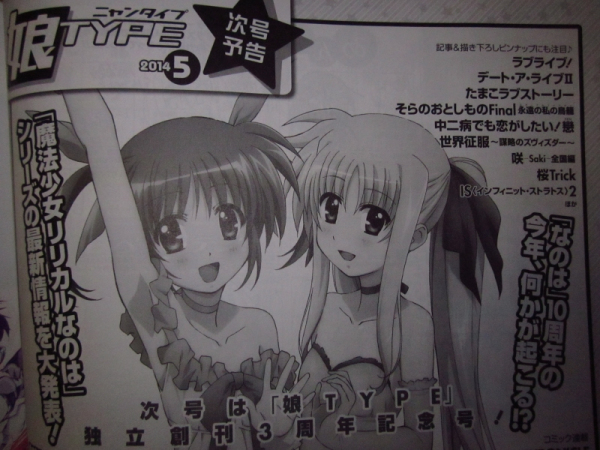 타카후지 카코 다음달 '냥타입' 2014년 5월호 예고 그림, 나노하 최신 정보 대발표 [애니] 작성일시 : 2014. 02. 28 (10:29) 조회 : 4,383 / 댓글 : 2 다음달에 발매될 예정인 '냥타입' 2014년 5월호 예고 그림인 듯합니다. 다음달 발매호는냥타입 독립창간 3주년 기념호라고 하는데요. '마법소녀 리리컬 나노하' 최신 정보를 대발표한다고 하네요. 기대해 보겠습니다. 출처(링크) : http://alonestar.egloos.com/4858641 1추천 글쓰기스크랩 신고