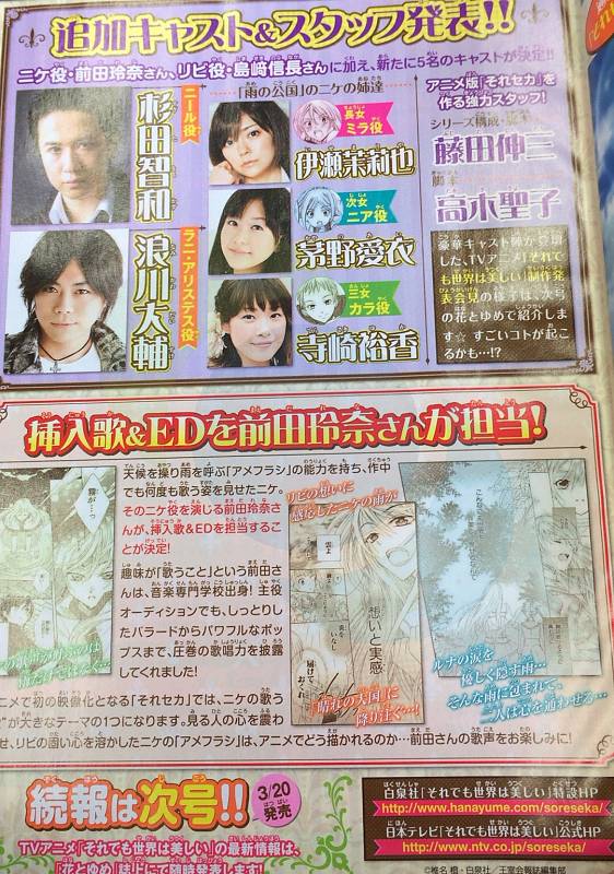 4월 신작 애니메이션으로 방영될 예정인 '그래도 세계는 아름답다' 관련 잡지 사진이네요.