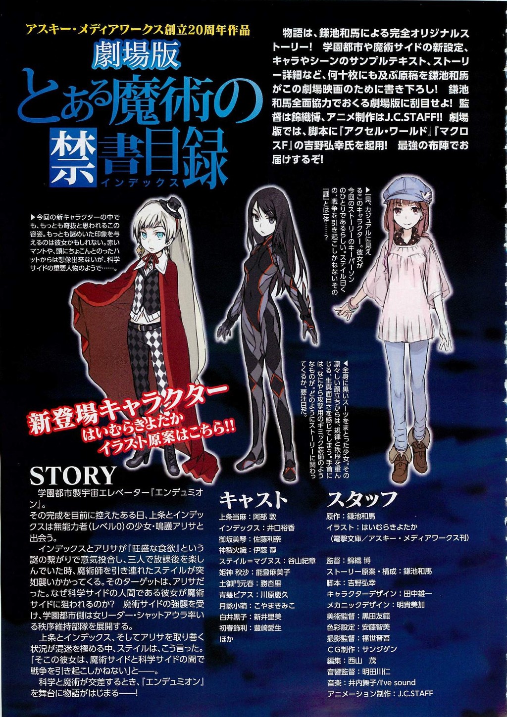 노예 어떤 마술의 금서목록 극장판 CAST 및 스토리 정보 공개! [애니] 작성일시 : 2012. 06. 07 (20:01) 조회 : 6,056 / 댓글 : 3 2012년 6월 9일 발매예정인 전격문고 MAGAZINE를 미리 입수한 분이 올린 스캔샷입니다. 원작 15권의 오리지널 스토리와 새로운 캐릭터의 등장. http://yaraon.blog109.fc2.com/blog-entry-10030.html 0추천 글쓰기스크랩 신고