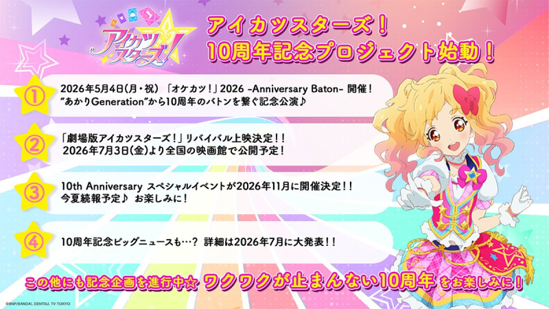 애니메이션 '아이카츠 스타즈!' 10주년 기념 프로젝트 시동 발표