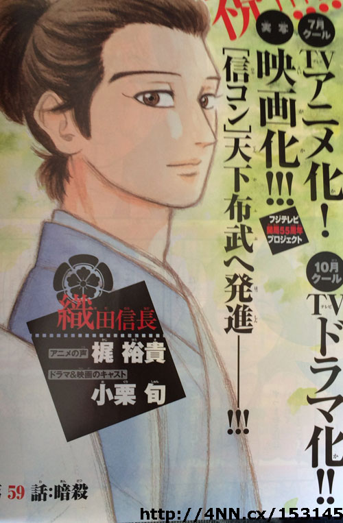 만화 '노부나가 콘체르토' TV 애니메이션화, 실사 드라마화, 실사 영화화 결정