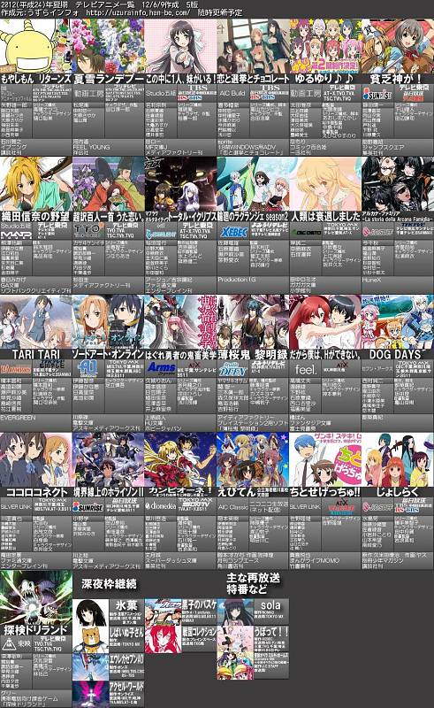 2012년 3분기(7월) 신작 애니메이션 목록 (6/9일자)