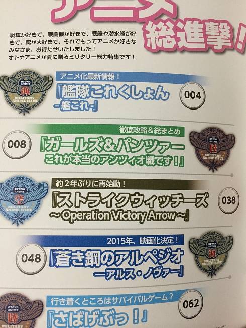 지난 8월 22일에 발매된 잡지 '오토나 아니메' Vol.35는 '여름의 밀리터리 대진격'이