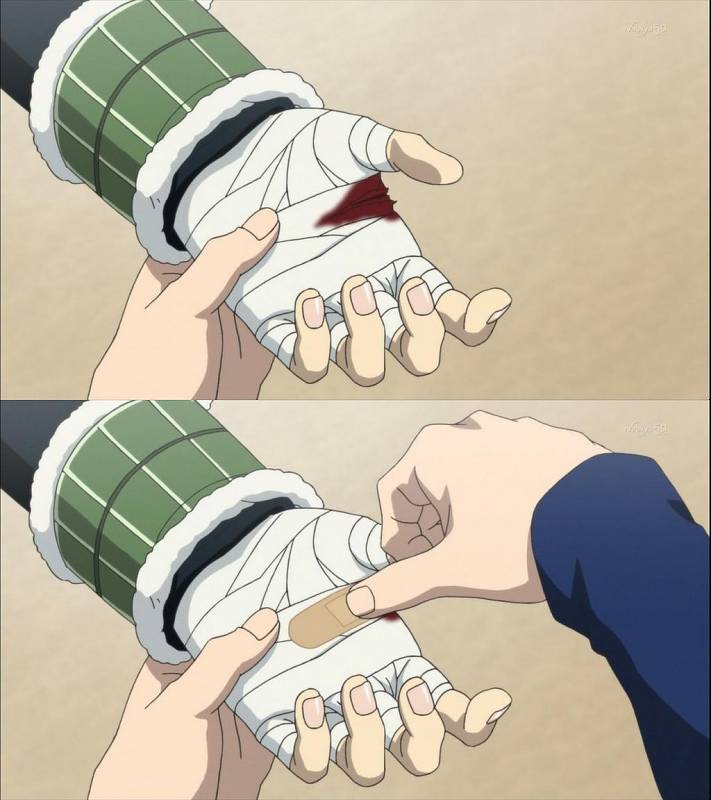 'DRAMAtical Murder' 애니메이션에 나오는 장면 같은데요. 손에 난 상처에 반창고를