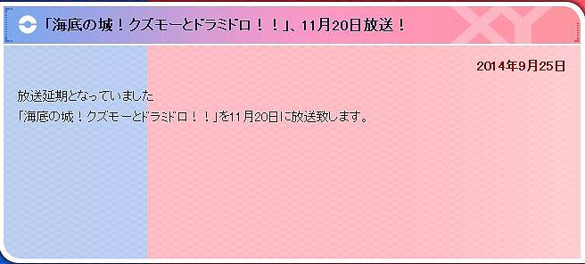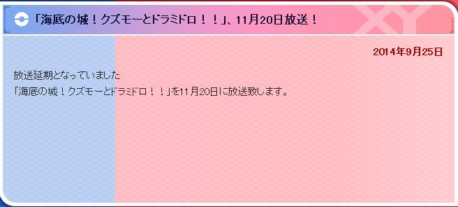 방영이 연기되었던 '포켓몬스터XY' 에피소드 11월 20일 방송
