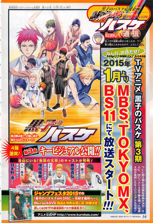 쿠로코의 농구 3기 TV 애니메이션은 2015년 1월부터 방송 예정