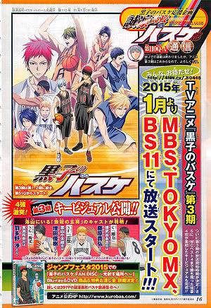 '주간 소년 점프' 2014년 제 49호에서 발표된 바에 따르면, '쿠로코의 농구' 3기 TV