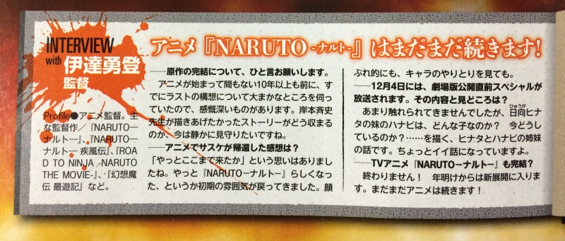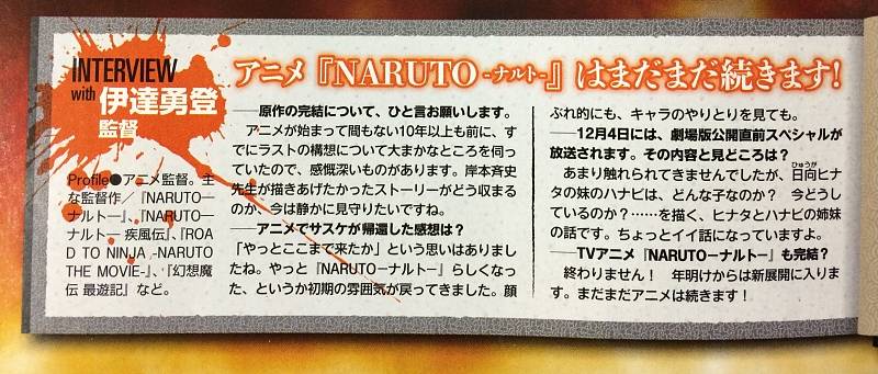 2014년 12월 4일, 극장판 나루토 공개 직전 스페셜 방송 예정