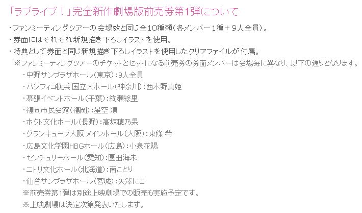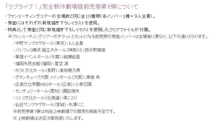 러브라이브 팬미팅 투어 2015 티켓은 극장판 예매권 제 1탄과 세트로 판매