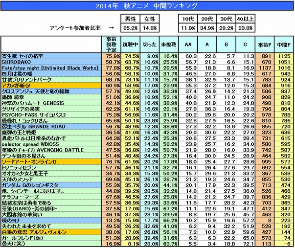 니코니코 유저들이 선정한 2014년 가을 시즌 방송 애니메이션 중간 랭킹
