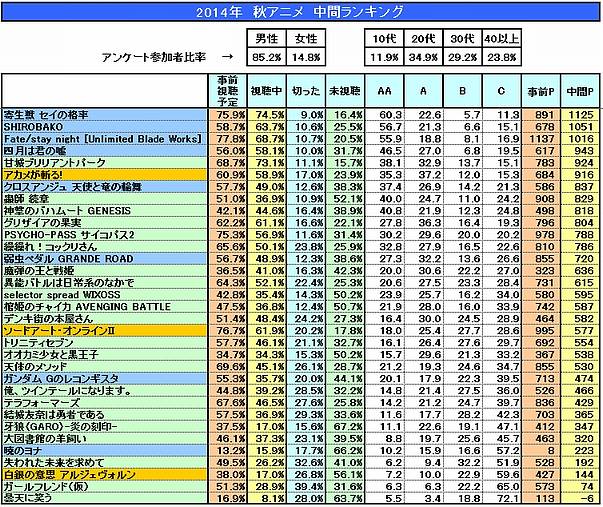 * 니코니코 유저들이 선정한 2014년 가을 시즌 방송 애니메이션 중간 랭킹
