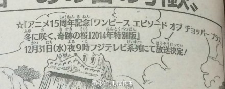 원피스 에피소드 오브 쵸파 플러스 겨울에 피는 기적의 벚꽃 2014년 특별판 방송 소식