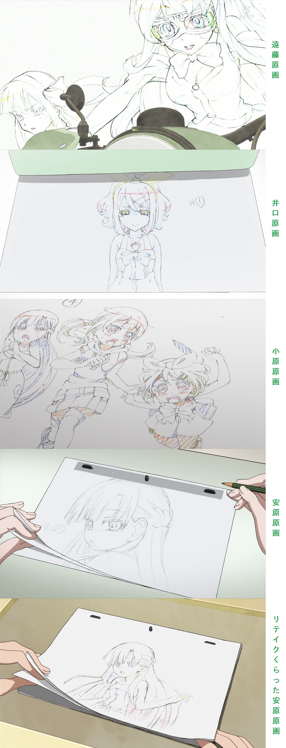 애니메이션 'SHIROBAKO' 작중에 등장하는 여러 애니메이터 캐릭터들의 작화 실력을