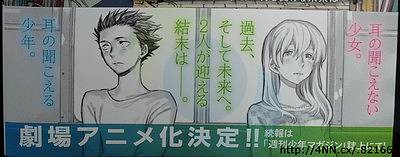 미유 '목소리의 형태' 애니메이션은 극장 애니메이션인 듯합니다. [애니] 작성일시 : 2014. 12. 15 (19:50) 조회 : 3,517 / 댓글 : 3 (사진 출처: 미국ANN) 지난번에 '목소리의 형태' 애니메이션화가 발표된 바 있습니다만, 이번에는 좀더 구체 적으로 극장 애니메이션이 제작된다는 사실이 밝혀졌다고 합니다. 단행본 최종권 플라 잉겟 정보에서 밝혀진 사실인 듯. 기대해 보겠습니다. 출처(링크) : http://alonestar.egloos.com/5259103 1추천 글쓰기스크랩 신고
