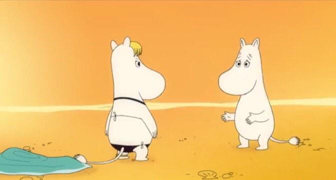 극장판 무민의 한 장면이라고 하는데요. 주인공 무민이 비키니 차림의 작중 캐릭터