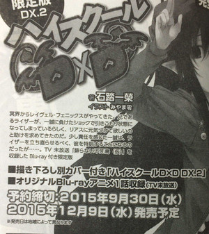 예정인 '하이스쿨 DxD DX.2' 한정판에는 TV 미방송 애니메이션 1화 분량을 수록