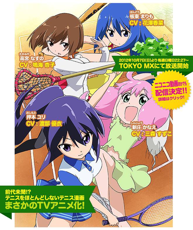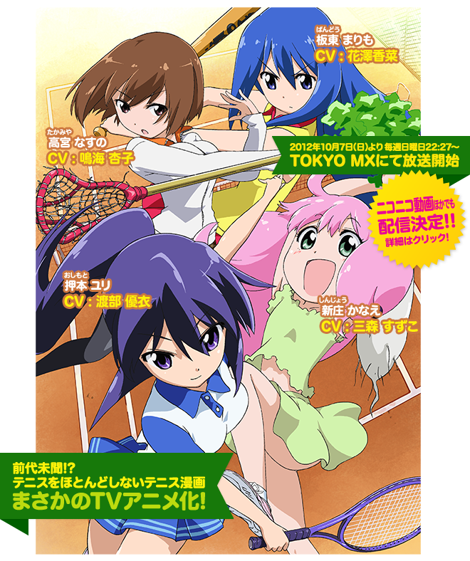를 거의 하지 않는(?) 테니스부의 이야기라고 하며, 여학생 4명이 등장하는 포복절도 일상