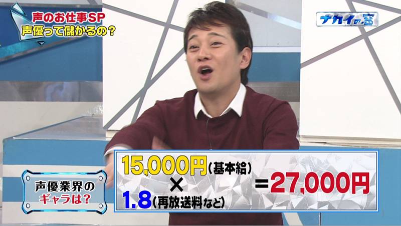 일본 성우 출연료는 라디오 < 애니메이션 < 나레이션 < CM < 게임 및 파친코