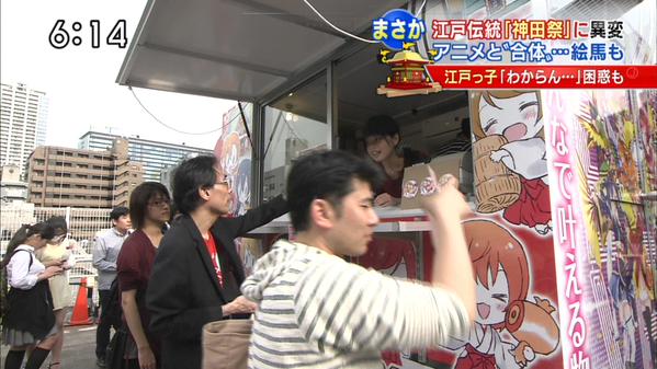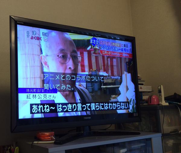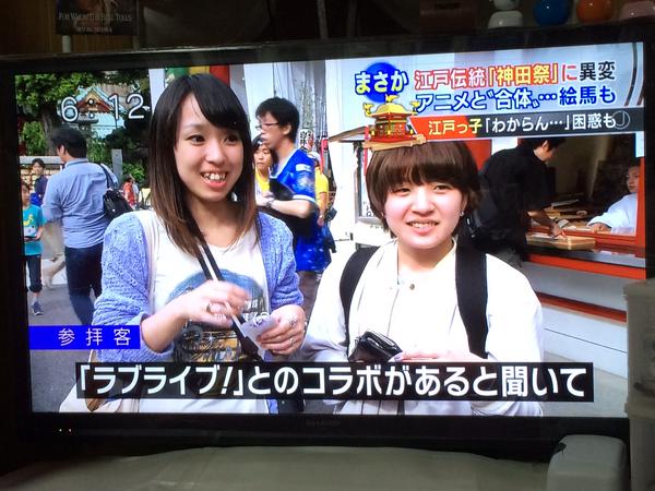 TV 아사히의 뉴스에서, 칸다묘진 x 러브라이브의 콜라보레이션에 대해 소개하는
