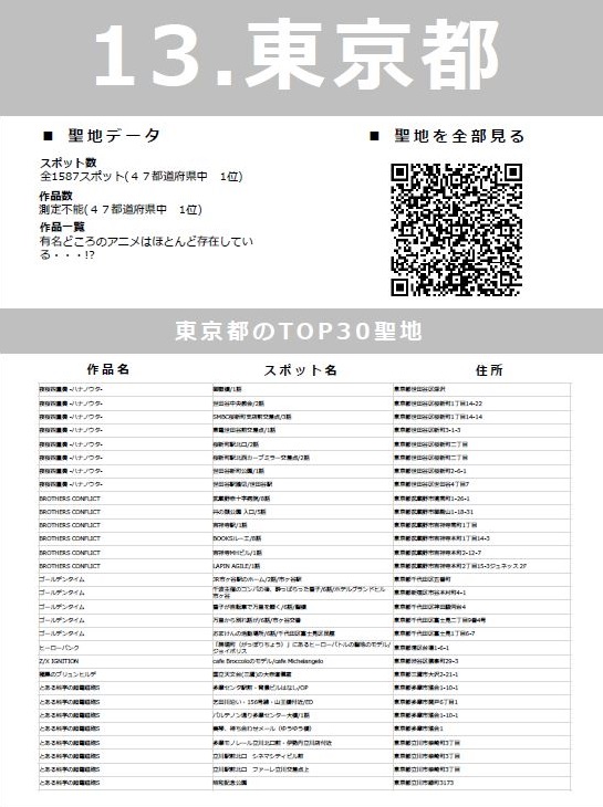 일본의 47 도도부현별로 애니메이션의 성지 데이터를 정리한 '성지백서'가 무료 배포