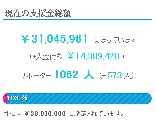 자금 모금이 목표 금액인 3000만엔을 무난히 달성했다고 하는데요. 이를 기념하여