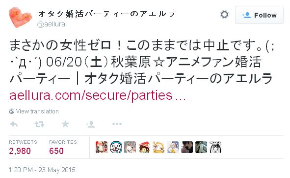 2015년 6월 20일, 아키하바라의 애니메이션 팬 맞선 파티 관련