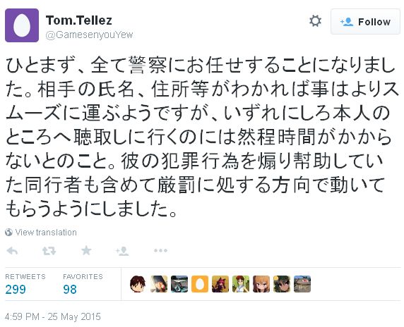 가 트위터에 '변호사와 상담한 후에 경찰에 수사를 의뢰했다'는 내용의 글을 올려