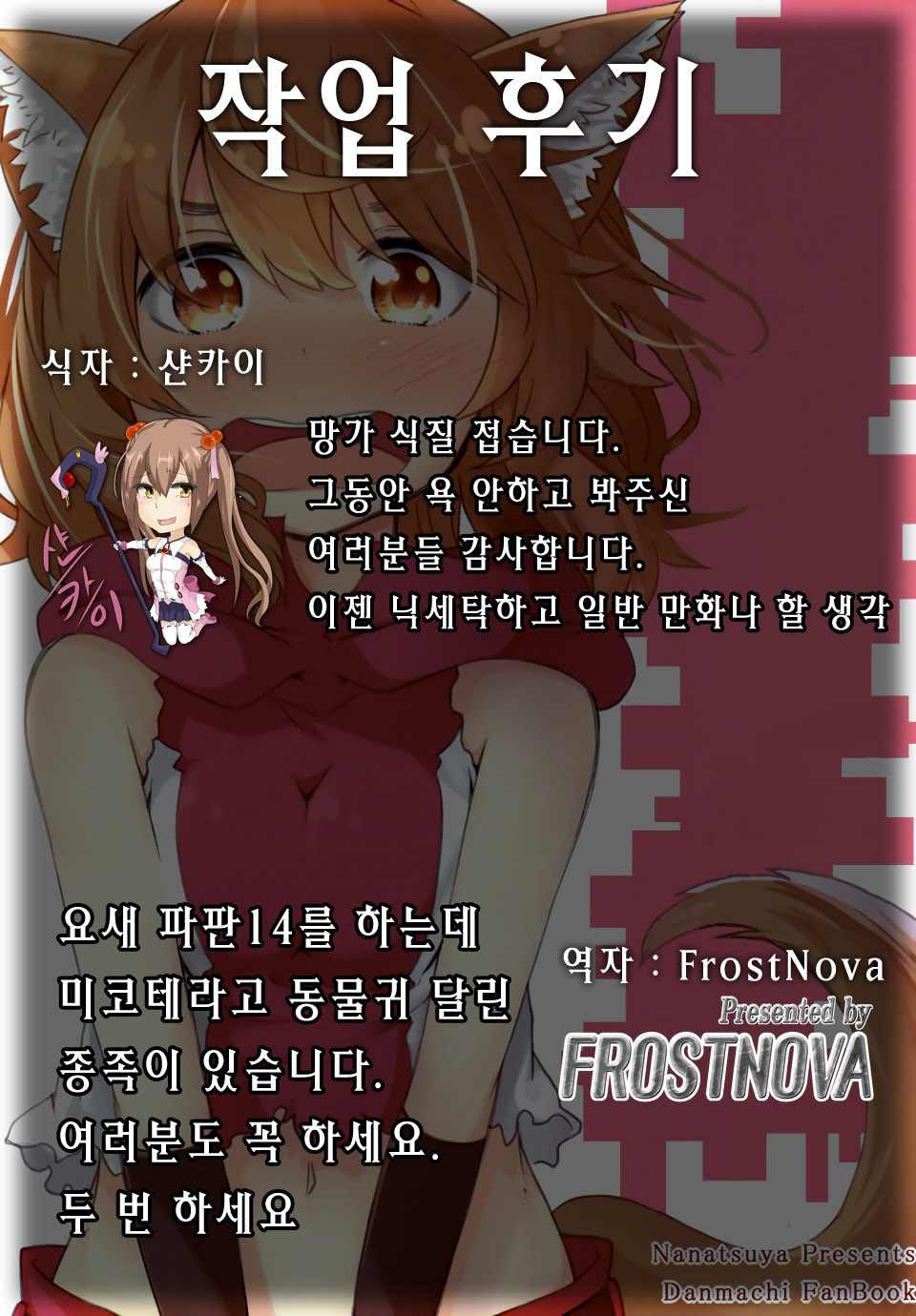 MoonIRIs 던만추 - 던전에서 만남을 추구하기 보다는 가까운 곳에 있는 여자애를 안아주는 편이 좋지 않을까요 작성일시 : 2015. 09. 11 (15:47) 조회 : 25,150 / 댓글 : 5 허억!!! 진짜 제대로 심장에 직격했군요!!! 릴리 너무 귀여워!! 네 그렇죠!! 릴리가 변신한 라이칸슬로프처럼 귀여운 귀와 꼬리가 있다면 더욱 만지고 싶어지는 것이지요!! 아 물론 그것도 귀여워야 하지만!! 하악!! 릴리 졸귀!!!!!!!!! 4추천 글쓰기스크랩 신고