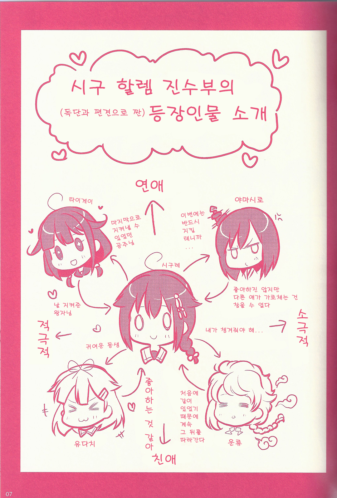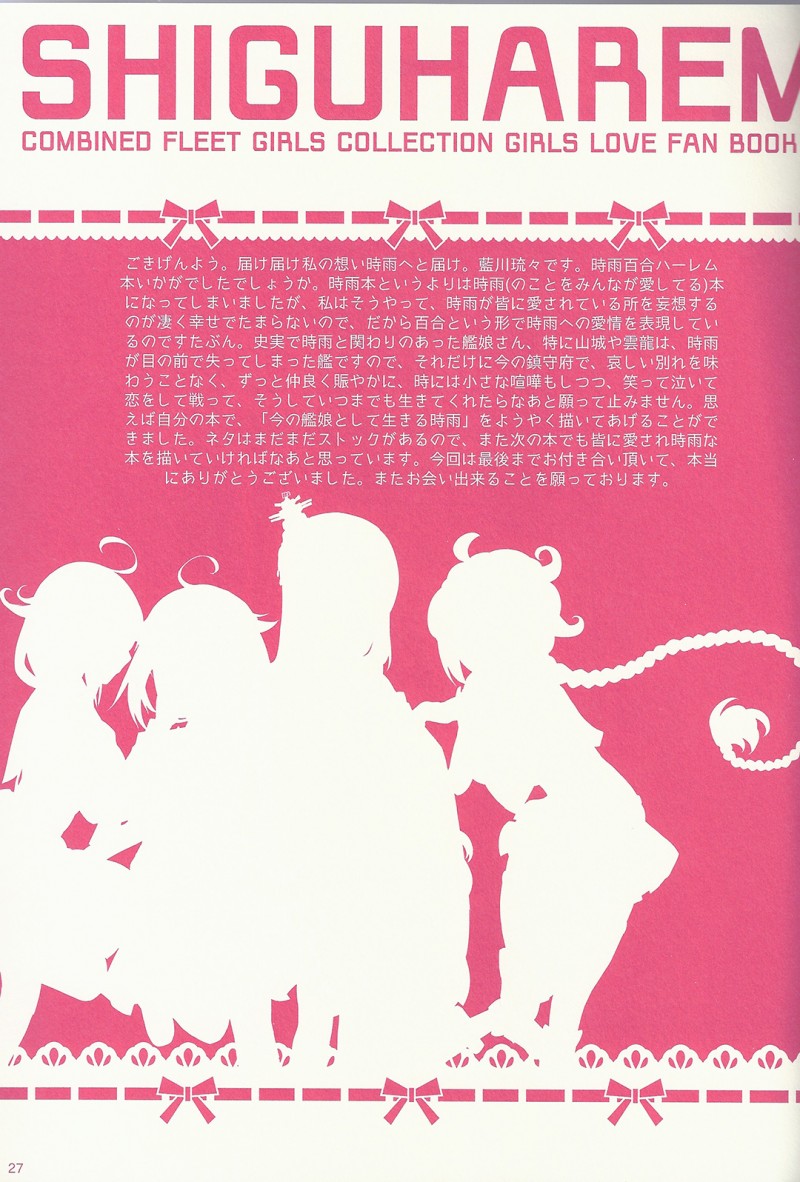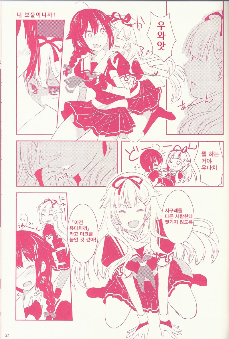 MoonIRIs 함대 콜렉션 - 시구할렘 작성일시 : 2015. 10. 10 (14:02) 조회 : 11,891 / 댓글 : 0 어제 얘기했던 동인지입니다!! 시구레의 하렘 이야기!! 상대는 타이게이, 야마시로, 유다치, 운류!! 일단 타이게이(류호)는 시구레가 침몰하기 전에 마지막으로 호위했던 배이고, 야마시로는 시구레의 소속이었던 니시무라 함대에서 대표적으로 연결되는 커플링, 유다치는 충견과 광견 자매로 원래부터 굉장히 유명한 커플링이고, 마지막 운류는 운류가 침몰하기 전에 마지막으로 호위했던 배가 시구레였었습니다!! 대표적으로 칸코레에서 시구레와 엮이는 아이들이지요!! 하악!! 마지막 키스 좋다!! 1추천 글쓰기스크랩 신고