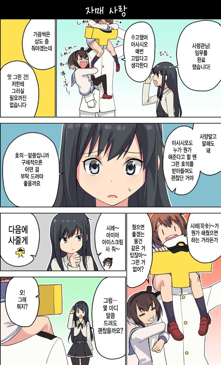 MoonIRIs 함대 콜렉션 - 뇌내진수부:자매 사랑 작성일시 : 2016. 08. 29 (21:30) 조회 : 3,824 / 댓글 : 2 핰핰!! 아사시오 귀엽고 착한 아이!! 출처(링크) : http://gall.dcinside.com/board/view/?id=kancolle&no=4635489&page=1&exception_mode=recommend 6추천 글쓰기스크랩 신고