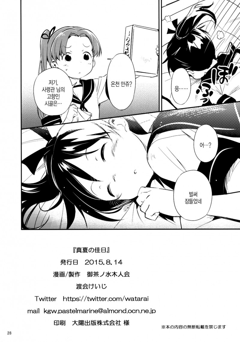 MoonIRIs 함대 콜렉션 - 한여름의 경삿날 작성일시 : 2015. 11. 13 (13:05) 조회 : 8,551 / 댓글 : 4 이번 동인지는 로리콘 제독의 동인지입니다!! 히익!! 시키나미라니!!!!!!!!! 구축함들 중에서도 굉장히 어린축에 속하는 시키나미라니!!!!!! 어쨌든 중간에 시키나미랑 제독의 어머니가 동시에 차 뿜는 모습이 굉장히 귀엽군요ㅋㅋㅋ 3추천 글쓰기스크랩 신고