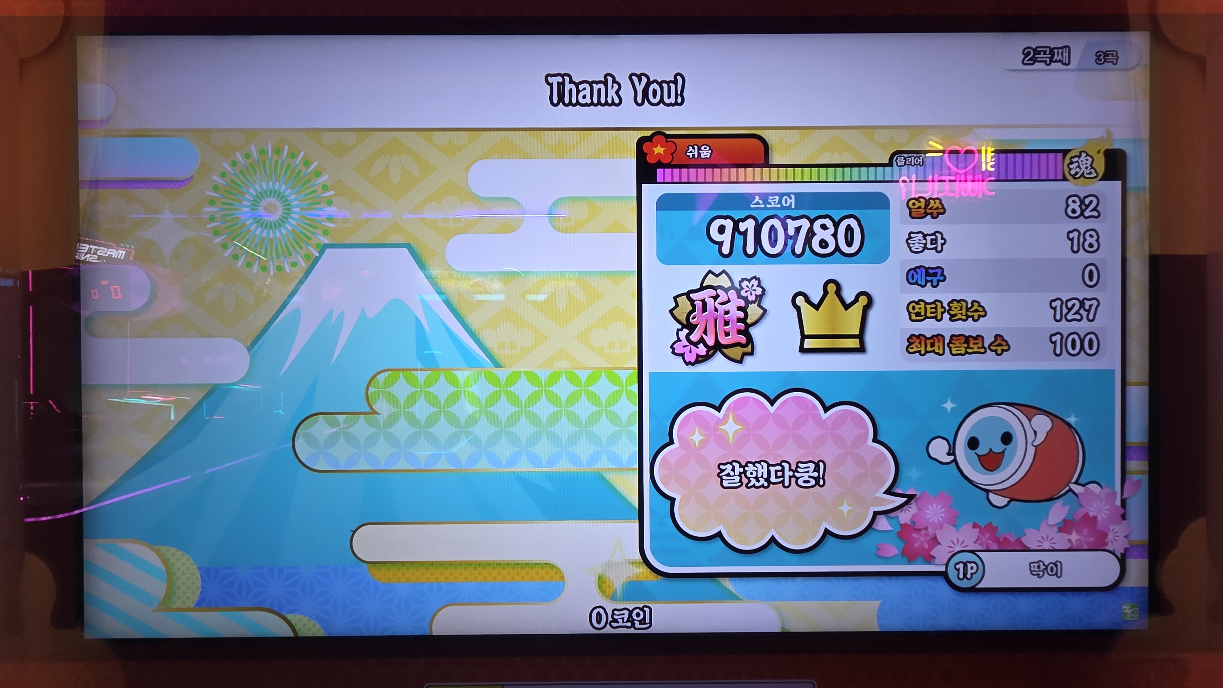 북을 치는게 재밌는데 열심히 쳤으니까~