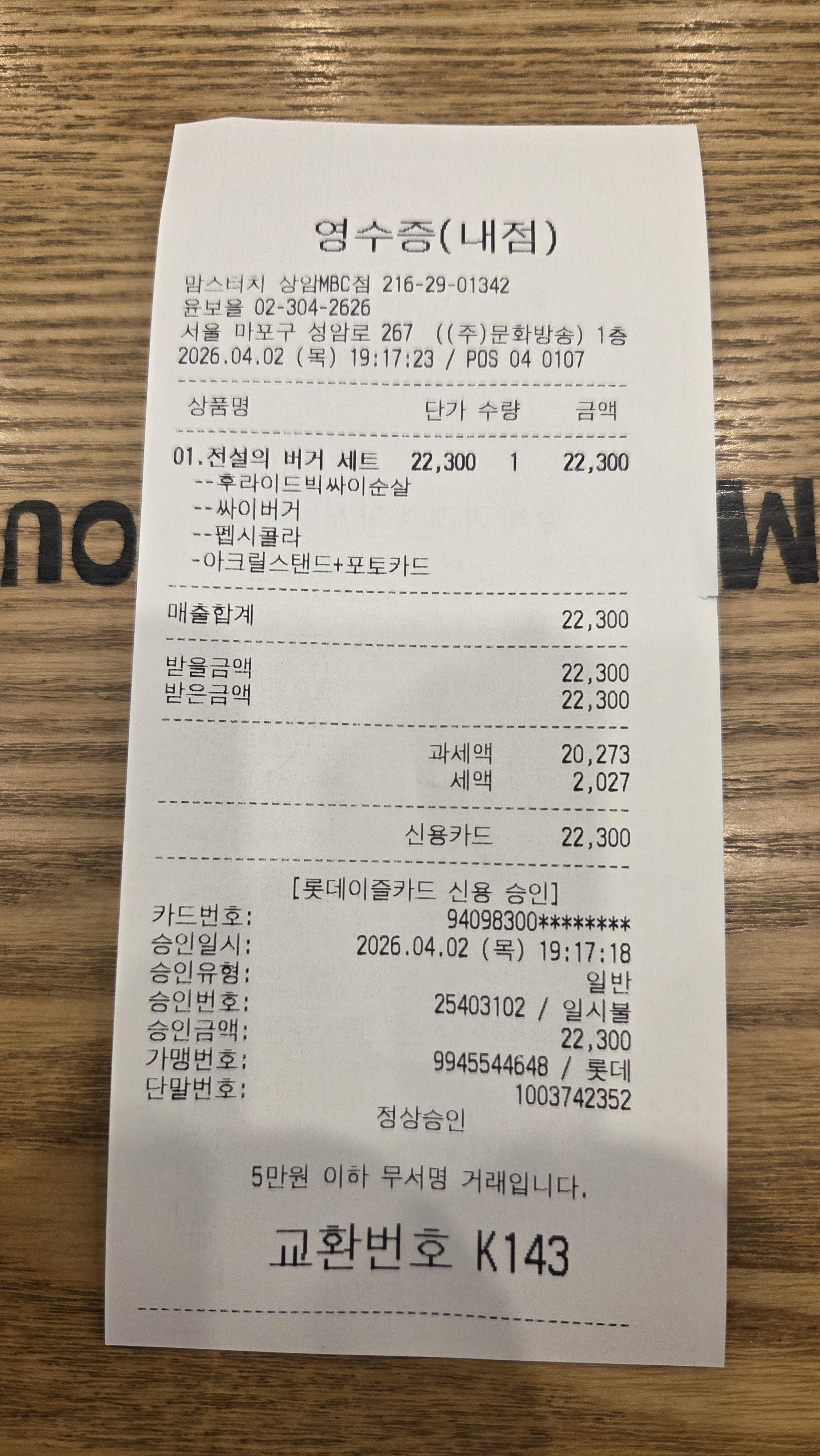배고픈데 저녁으로 맘스터치 상암 MBC점에 다녀왔다오~