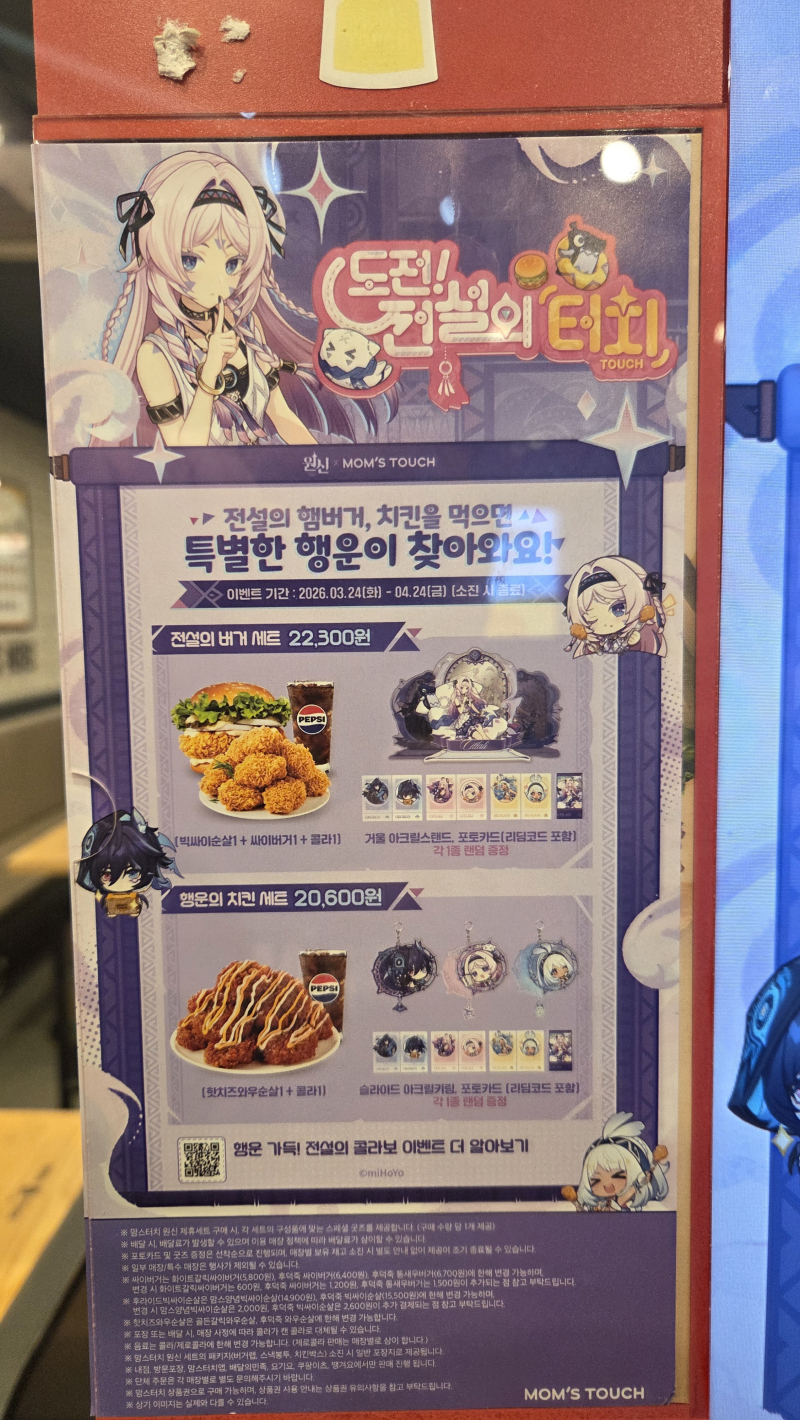 맘스터치 상암 MBC점에 가서 원신 콜라보 전설의 버거 세트로 맛있게 먹고~ 서울 동교동에 가서 승리의 여신 니케 2주년 전시회로 구경하고 다녀왔다오~