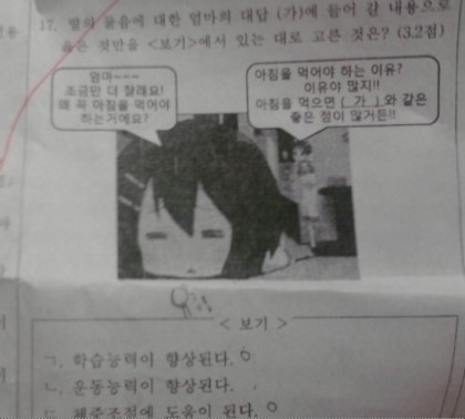 아니 시험문제에 애니 캐릭터가 나오다니 신선하네요 ㅋㅋ