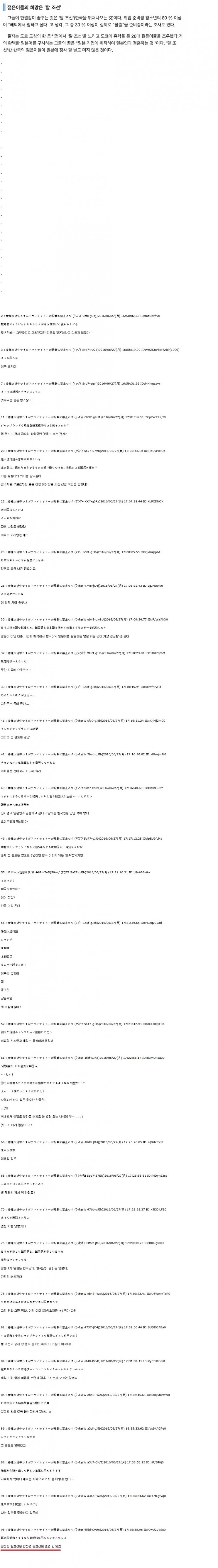 린스갓 탈한국, 일본으로 넘어가자! 의 일본반응 [일반] 작성일시 : 2016. 07. 04 (18:27) 조회 : 1,149 / 댓글 : 5 ㅋㅋ 역시 형제국가...자기들이 동조선이라네요 ㅋㅋㅋ 3추천 글쓰기스크랩 신고