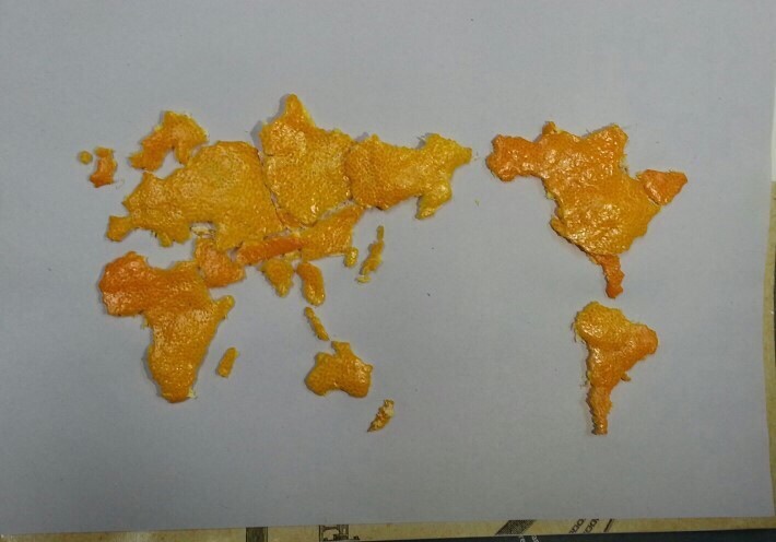 귤껍질로 만든 세계지도