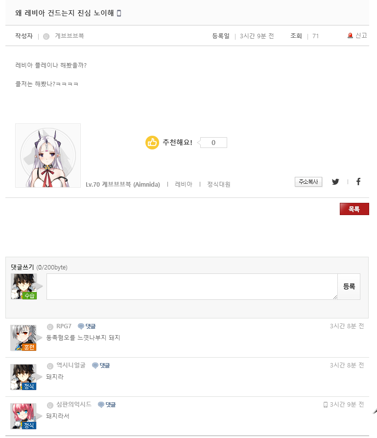 레비아를 왜 건드는지 이해를 못한 유저