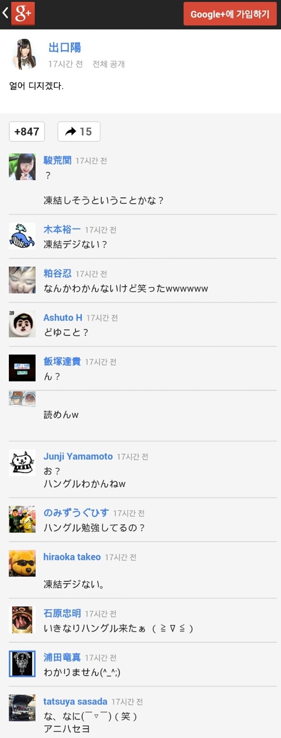 린스갓 일본 아이돌 sns [일반] 작성일시 : 2016. 07. 28 (21:29) 조회 : 1,177 / 댓글 : 0 SKE48 데구치 아키의 구글 플러스 트윗 1추천 글쓰기스크랩 신고