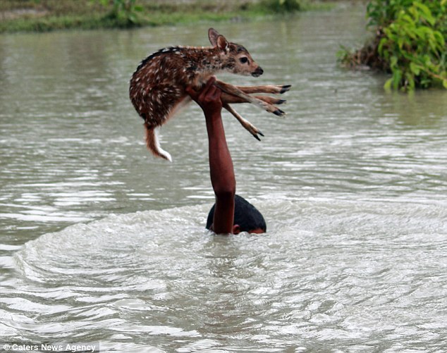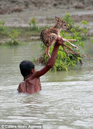린스갓 새끼 사슴을 구하기 위한 10대 소년의 목숨을 건 사투 [일반] 작성일시 : 2016. 07. 29 (16:24) 조회 : 1,421 / 댓글 : 1 월 6일, 홍수로 범람한 강에 고립된 새끼 사슴을 살리기 위한 방글라데시 10대 소년의 목숨 건 사투...물에 빠져서도 사슴을 잡은 손 만은 하늘을 향한 채 침착하게 대처해 안전한 곳으로 무사히 빠져 나갔다고 합니다. 3추천 글쓰기스크랩 신고