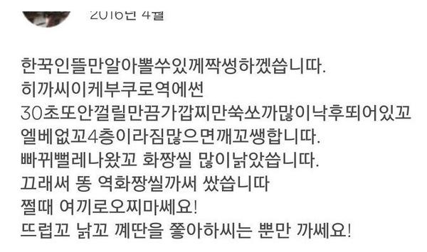 린스갓 한국인만 알아 들을 수 있는 암호문 [일반] 작성일시 : 2016. 08. 03 (15:46) 조회 : 1,388 / 댓글 : 3 번역기 오류 뜰듯 ㅋㅋ 1추천 글쓰기스크랩 신고
