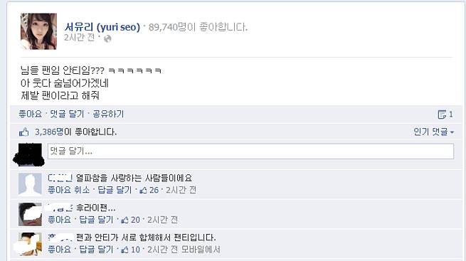 서유리 팬분들도 재밌군여 ㅋㅋ