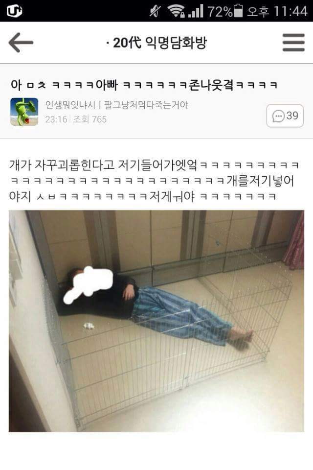 강아지한테 괴롭힘 당하는 아버지