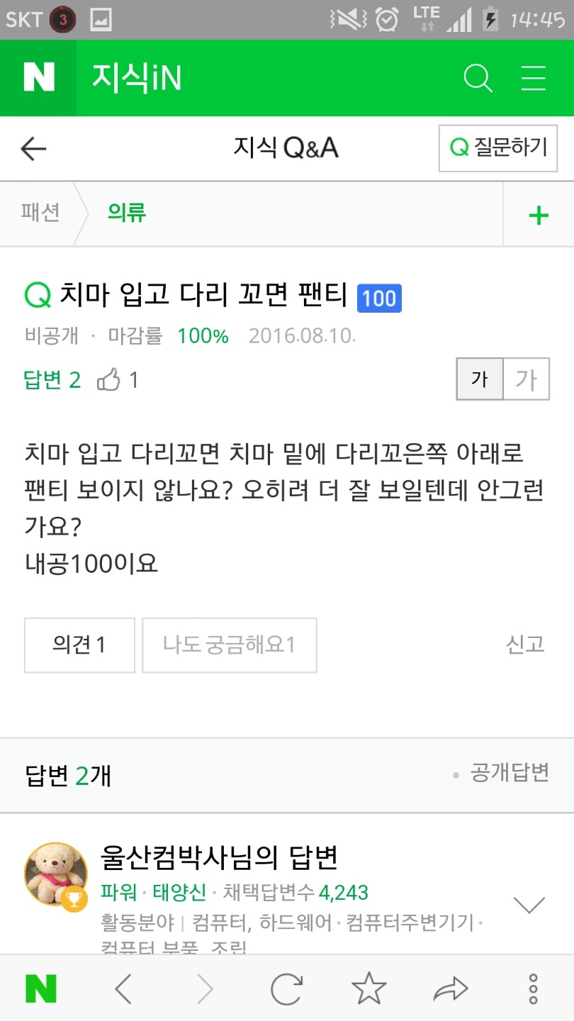 치마입고 다리 꼬면 팬티 보이나요?