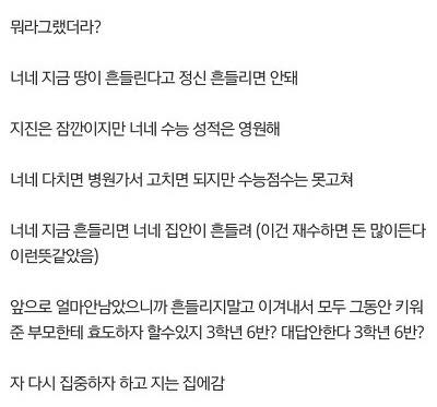 지진 났을때 어느 고등학교 담임쌤의 말